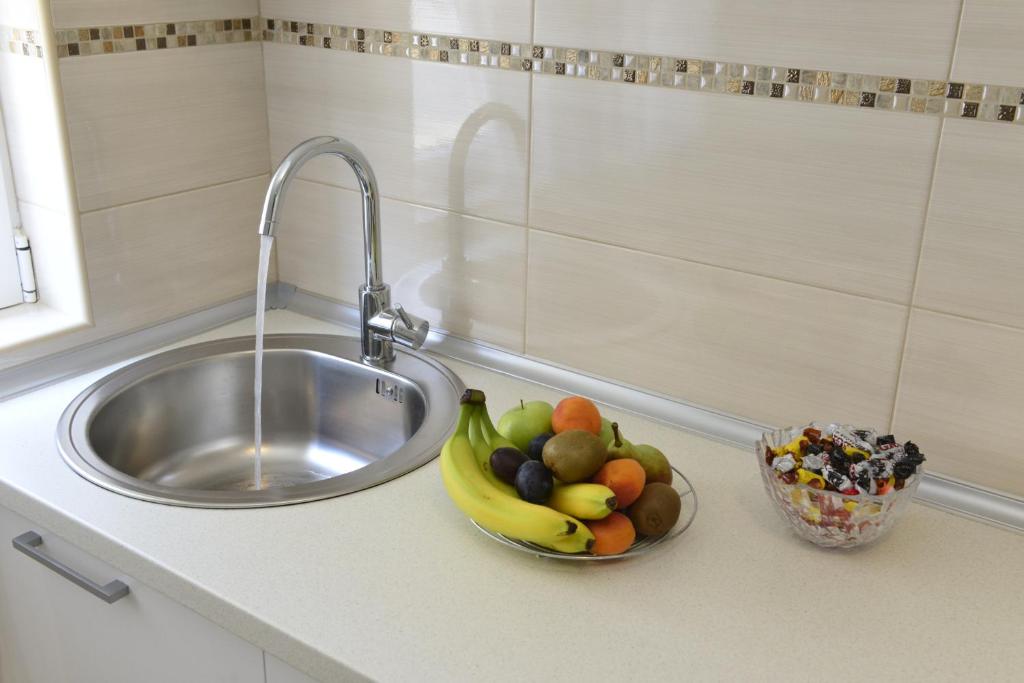 frižider, mašina za pranje veša, kuhinja, električno kuvalo, posuđe, rerna, ploča za kuvanje, toster, sredstva za čišćenje, sto za ručavanje, čaše za vino