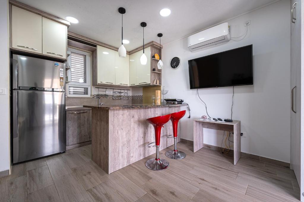 Featuring a private entrance, this air-conditioned apartment consists of 1 living room, 1 separate bedroom and 1 bathroom with a walk-in shower and a hairdryer. The well-fitted kitchen features a stovetop, a refrigerator and an oven. Boasting a terrace with sea views, this apartment also provides a washing machine and a flat-screen TV with satellite channels. The unit offers 3 beds.