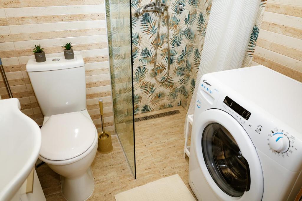 The apartment's kitchen is available for cooking and storing food. The apartment features air conditioning, a washing machine, heating as well as a terrace with garden views. The unit has 2 beds.